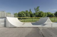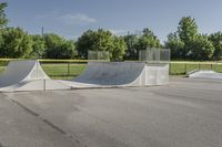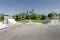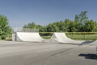 A skateboarder enjoying a sunny day at an elevated skatepark in Toronto, Ontario, Canada.
