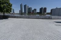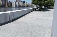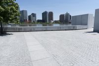 A view of the iconic New York City skyline, featuring its buildings, structures, and unique urban design, all surrounded by a clear sky and the waters of the USA.