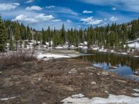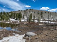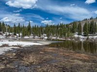 In the winter wonderland of Colorado, the landscape is transformed into a breathtaking scene. Snow-covered mountains and open spaces stretch as far as the eye can see. Lakes and swamps dot the terrain, reflecting the clear blue sky and fluffy white clouds. Nature thrives in this snowy paradise, with mud and water creating a contrast against the pristine snow. It's the perfect destination for outdoor enthusiasts and nature lovers alike.