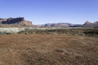 A breathtaking view of the red rock formations and grassy slopes in Davis Canyon, Utah, USA, under a clear sky. The rugged terrain and open space of the canyonlands provide a stunning natural backdrop for outdoor enthusiasts and nature lovers.