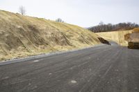 A view of a straight road in Bristol, Tennessee with grey sky and open space.