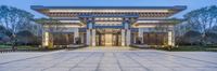 A view of a straight road in Chongqing, China, with residential buildings, trees, and clear sky in the background.