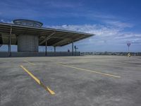 A view of a straight road in the city, with buildings and parking lots on both sides, under a cloudy sky.