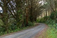 A sunny day in New Zealand with a straight road leading through a beautiful forest of trees. The gravel road is surrounded by lush green grass and dirt, with the bright sun visible overhead. The low angle of the photo captures the scenic view of the road stretching into the distance, inviting exploration.