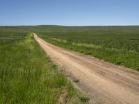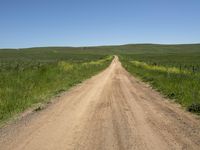 A view of the straight road in Nimmitabel, New South Wales, Australia, surrounded by lush green grass, open fields, and clear blue sky.