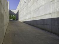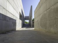 A view of a straight road in Zaragoza, Spain. The road surface is made of composite material and asphalt, with modern architecture buildings and facades on both sides. The clear sky and low, hard shadows create a striking contrast against the concrete walls and urban design of the city. The straight road leads to a tunnel, adding an element of intrigue and depth to the image. This architectural marvel showcases the structural elements and symmetry of the urban landscape in Zaragoza, Europe.