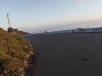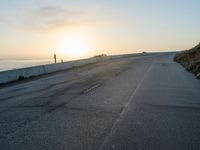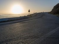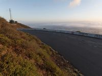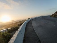 A high elevated road in California, USA, under a clear blue sky with sunshine visible above the clouds.