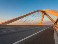 A straight road at dawn in Barcelona, Spain with clear skies and the Prat bridge in the background.