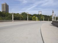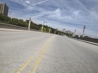 A straight road in Milwaukee, Wisconsin, surrounded by residential areas and skyscrapers.