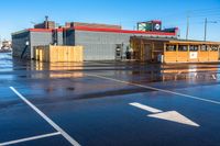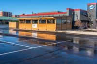 A clear sky day in Toronto, Ontario, Canada. A straight road cutting through an open space, with an asphalt surface. Perfect for a drive or to find a parking spot near a restaurant to eat out.