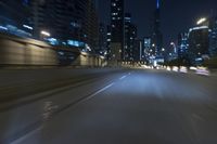 The city of Chicago, Illinois, USA is seen from above at midnight with artificial light illuminating the concrete street, highway, and buildings in the metropolitan area. Urban infrastructure, trees, and automotive design are illuminated in the winter atmosphere, creating a beautiful skyline.