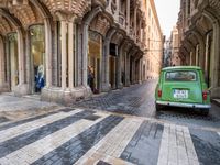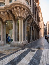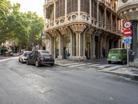 Classic architecture lines the streets of the art district in Mallorca, one of the Balearic Islands in Spain. Asphalt roads, storefronts, and paver surfaces stretch out in a straight line, the perfect profile shot of an urban day in Europe.
