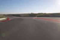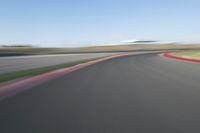 A straight, red road leads to the horizon, with a yellow sun shining in the clear sky. An automotive design, with an infrastructure of a field, sand, and sea, forms the landscape of this mode of transport. Automobiles and airplanes race along a curve, with the blur of motion and the structure of a flight runway creating a race track atmosphere.