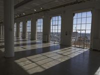 An urban oasis in Los Angeles, California, USA, this sun-drenched office building is a stunning example of modern architecture and interior design. From the glossy tile flooring to the expansive river view, the bridge, pier and business district create a unique symmetry.