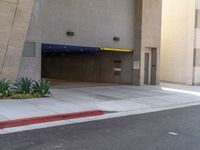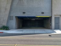 A residential house in California suburb with a concrete surface parking garage and asphalt road during the day, casting a hard shadow.