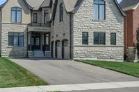 A beautiful suburban home with a stone wall and a well-maintained driveway in Toronto, Canada.