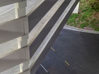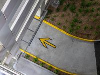 An elevated, top-down view of a residential suburb of Los Angeles, USA, featuring an asphalt road, driveway, open space, parking deck, and parking lot illuminated by artificial light and street lights at night.