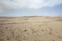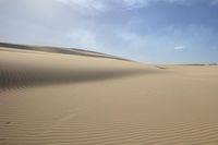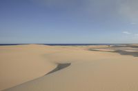 Scenic view of a vast open space with sand dunes and clear blue sky in the Sahara desert