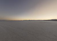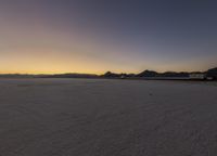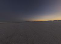 The atmosphere of the Utah desert is breathtaking at night, with its clear sky, black horizon, and blue sea of salt stretching out across the natural environment. The salt surface of the plain is illuminated by the moonlight, creating an emotional landscape of calm and a line of mountains in the distance.