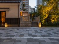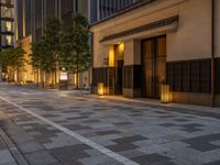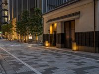 In the heart of Tokyo's bustling business district, the city comes alive with the break of day. Modern office buildings line the streets, illuminated by the warm glow of street lights and the artificial light emanating from shops and storefronts. The urban design showcases a perfect blend of traditional Japanese architecture and contemporary design, creating a unique and vibrant atmosphere. Paved roads and sidewalks provide a smooth path for pedestrians to explore the city's bustling streets, offering a glimpse into the dynamic and fast-paced city life of Tokyo.