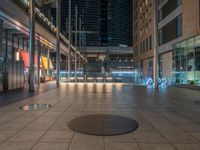 Experience the vibrant city life of Tokyo in its bustling business district. Modern architecture and sleek office buildings illuminate the night with artificial light, creating a captivating atmosphere. Straight down the road, you'll find a variety of shops, restaurants, and storefronts, offering a diverse range of dining and shopping experiences. The urban design of Tokyo combines open spaces with paver surfaces and street lights, creating a dynamic and inviting environment. Immerse yourself in the energy of this urban metropolis, where tradition meets modernity.