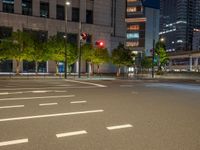 In the heart of Tokyo's bustling business district, modern architecture illuminated by artificial light dominates the cityscape. Asphalt roads weave through the financial district, lined with office buildings and street lights. As night falls, the city comes alive with the glow of traffic lights and urban lights against a clear sky. The contrast between dark streets and brightly lit crossings creates a dynamic urban landscape in this vibrant Japanese city.
