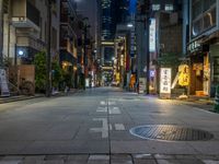 Experience the vibrant city life of Tokyo as you stroll down the bustling streets lined with shops and restaurants. The roads are illuminated by street lights and the glow of artificial lights, creating a captivating atmosphere after dark. The straight roads lead you through the urban landscape, with storefronts and pavers adding to the city's charm. Explore the one quarter of Tokyo known for its shopping and dining options, immersing yourself in the unique urban design of Japan's capital city.