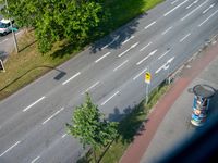 A high-angle shot of an elevated road in Hamburg, Germany, with traffic lights and stoplights. The asphalt road stretches into the distance, capturing the bustling traffic and cityscape. This aerial view provides a unique perspective of the road network in Deutschland, showcasing the infrastructure and urban life in Europe.