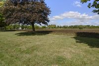 A scenic view of the open green space in Toronto, Ontario, Canada with lush grass and trees, creating a peaceful natural environment perfect for recreational activities on a sunny day.
