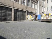 A Land Rover Defender making its way down a cobblestone street in Berlin, Germany. An art district with classic architecture, cafes, and botany is visible in the background.