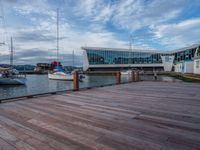 Located in Wellington, New Zealand's North Island, this open space features a wooden jetty extending into a tranquil lake. The wooden floor and pier blend seamlessly with the natural surroundings, under the vast open sky dotted with fluffy clouds. The low wooden jetty offers a peaceful landing spot, perfect for enjoying the serene water views on a sunny day.
