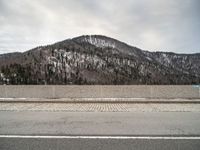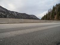 A view of the German countryside in the winter, featuring a mountainous landscape, snow-covered roads, and a bridge in the foreground.