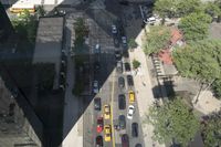 Aerial view of the metropolitan area of New York City, USA, showcasing the city's iconic architecture, high-rise buildings, and busy roads.