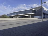 A view of the cityscape in Barcelona, Spain, showcasing the modern architecture and urban design of the Zona Franca business district. The photo features an office building with a facade made of composite material, surrounded by residential areas and a network of roads and thoroughfares.