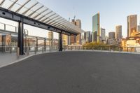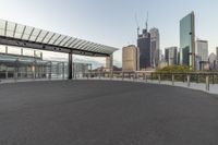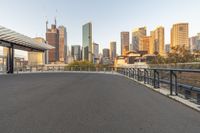 A stunning view of modern architecture in the bustling city, with skyscrapers, office buildings, and a clear blue sky.