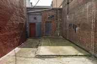 A modern architecture building with a brown brick facade and red brickwork, located in a bustling city street.