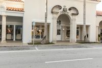 A classic residential building with a beautiful facade and arched doorway in a suburban town