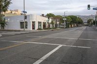 A gloomy morning in Los Angeles showcases the classic architecture of residential neighborhoods and shopping districts in the city.