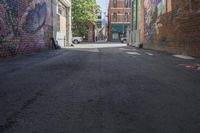 A snapshot of the vibrant city life in downtown Denver, showcasing the classic architecture, brick walls, and graffiti art along the alley-ways and side roads.