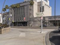 A view of a vibrant cityscape in Los Angeles, California, USA showcasing modern architecture, busy streets, and a clear sky.