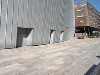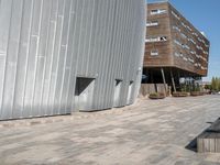 A modern residential area of Holland is visible, featuring high-rise buildings, grey asphalt, trees, and street lights. Wood flooring, hotel facades, and composite material windows can be seen in the urban design, with a clear sky overhead.