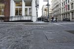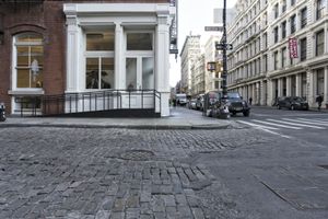 A view of a street in New York City, showcasing the city's architecture and bustling urban life.