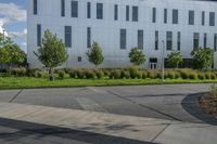 A modern office building with a sleek facade and contemporary urban design in the business district of Toronto, Canada.