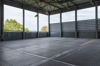 A view of urban architecture in Toronto, Ontario, Canada. This photo captures a cityscape with buildings, houses, and industrial factories. The concrete surfaces and parking deck provide ample space for urban transport. The open spaces and tree-lined streets add a touch of greenery to the urban landscape.