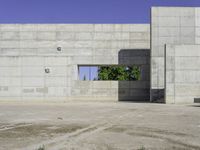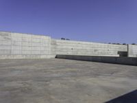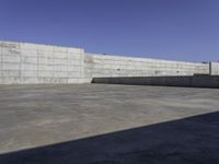 A modern architectural structure in Zaragoza, Spain, showcasing a composite material road surface and concrete walls under a clear sky. The building stands tall against the urban landscape, with its low profile and elevated design creating a striking silhouette. The hard shadows and tints of grey add depth and contrast to the structure, while the vegetation and open space around it provide a refreshing touch. This archviz image captures the beauty of the city's modern architecture and urban design.