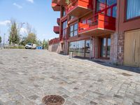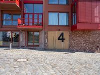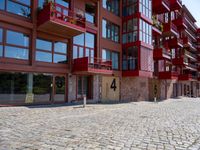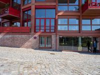 The red brick wall of a residential building stands out against the backdrop of modern architecture in Berlin, Germany's vibrant business and art district in the heart of Europe.