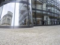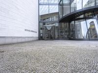 A plaza in the heart of Berlin, Germany featuring modern architecture, cobble stone surfaces, office buildings, and a museum creates a vibrant urban business district on a sunny day in Europe.