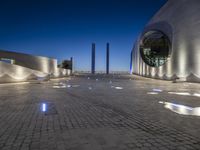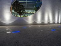 The modern city of Lisbon in Europe offers a unique urban design experience with cobblestone roads, asphalt surfaces, public spaces, office buildings, museums, trees, and artificial lighting. The clear night sky provides a perfect backdrop for the azure gas lights and the rolling reflection off the glass windows of the facade of the buildings. The tints and shades of the concrete ceiling and the vegetation create a unique atmosphere.