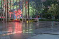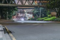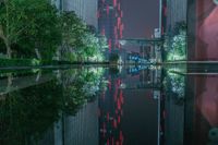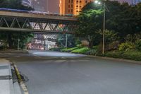 Aerial view of the city of Guangzhou, China, showcasing its modern architecture, neon lights, and urban landscape along the harbor and coastal area. Taken from a low, elevated position, the shot reveals a night-time celebration in the city, illuminated by street lights and artificial light.