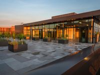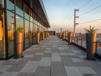 A stunning view of the city skyline at dawn, showcasing the urban design and towering skyscrapers amidst the cloudy sky and concrete surfaces.
